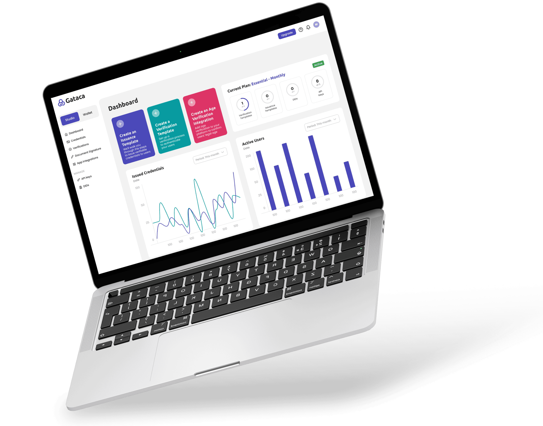 Gataca Studio is a cloud platform solution that allows the issuance, verification, and management of verifiable credentials from a simple dashboard.